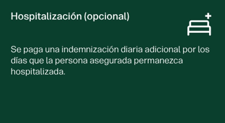 La indemnización por hospitalización está limitada a un máximo de 180 días por hospitalización y es adicional a la indemnización por incapacidad temporal.